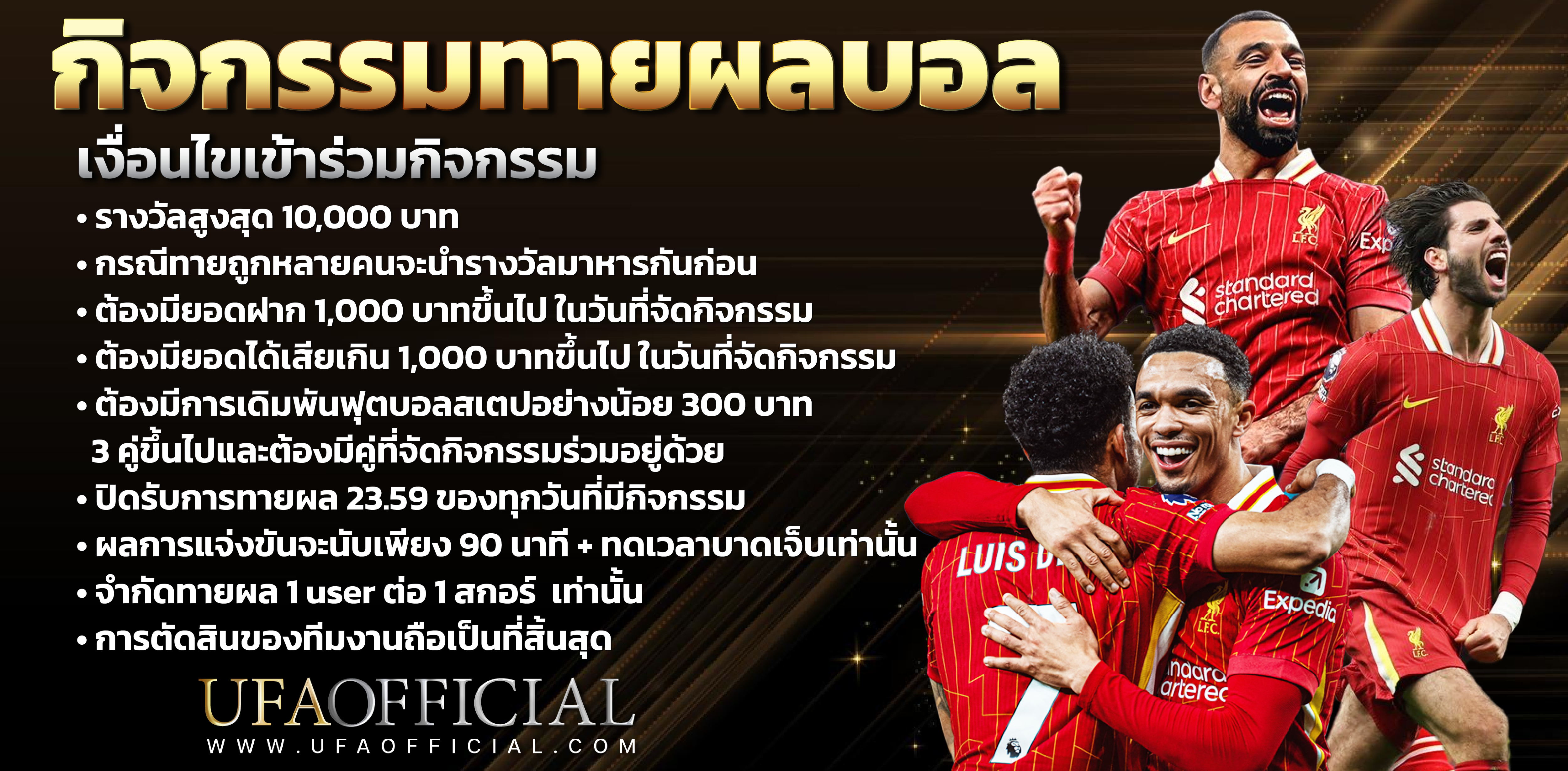 • จำกัดทายผล 1 user ต่อ 1 สกอร์ เท่านั้น หากทายหลายสกอร์ ถือว่าตัดสิทธิทุกกรณี